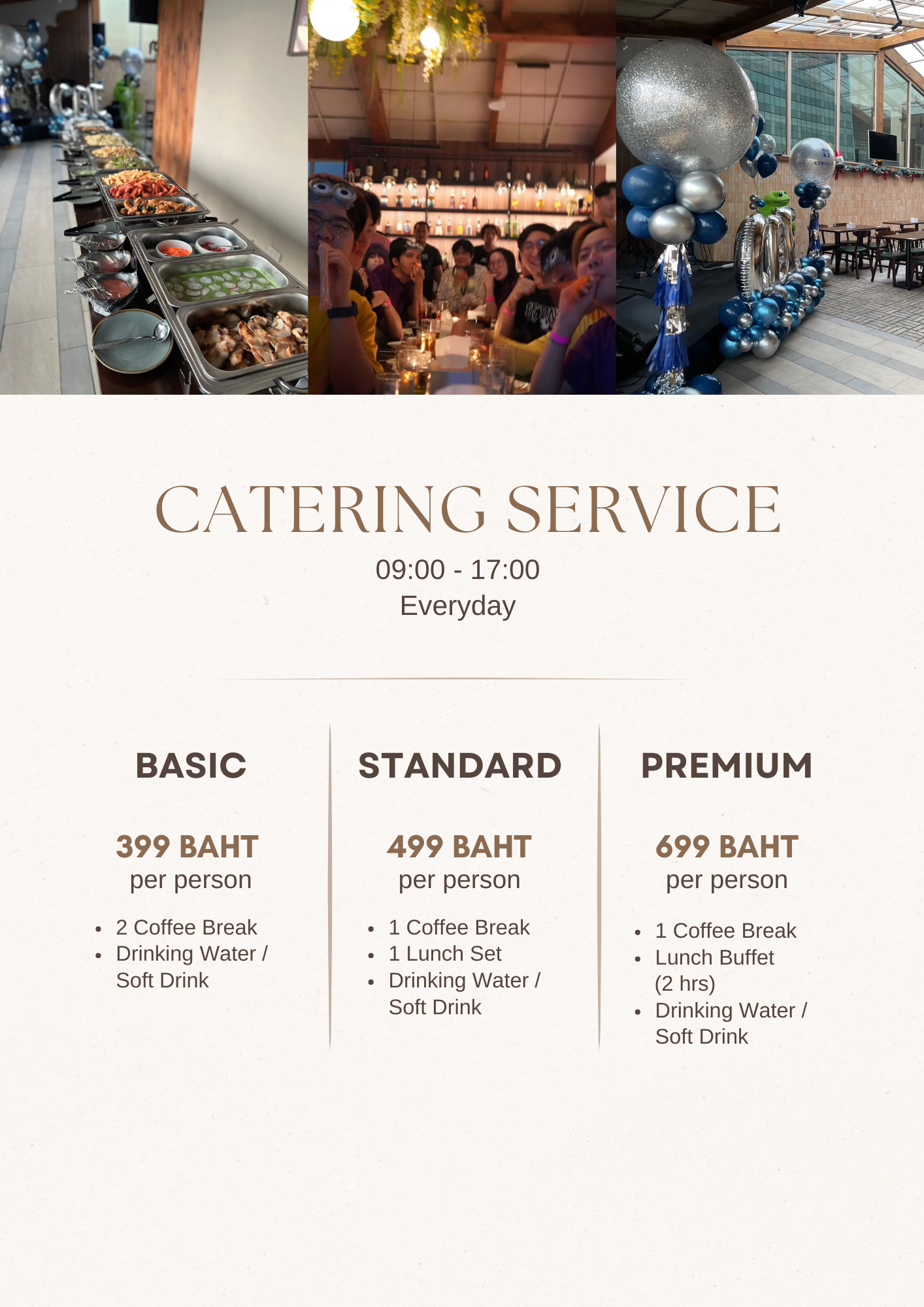 เพลิดเพลินกับบุฟเฟ่ต์อาหารรสเลิศ ที่คัดสรรมาอย่างดีเพื่อเหมาะกับทุกงาน ทีมงานของเราพร้อมดูแลทุกรายละเอียด เพื่อให้ทุกมื้ออาหารเป็นประสบการณ์ที่น่าประทับใจสำหรับคุณและแขกคนสำคัญ