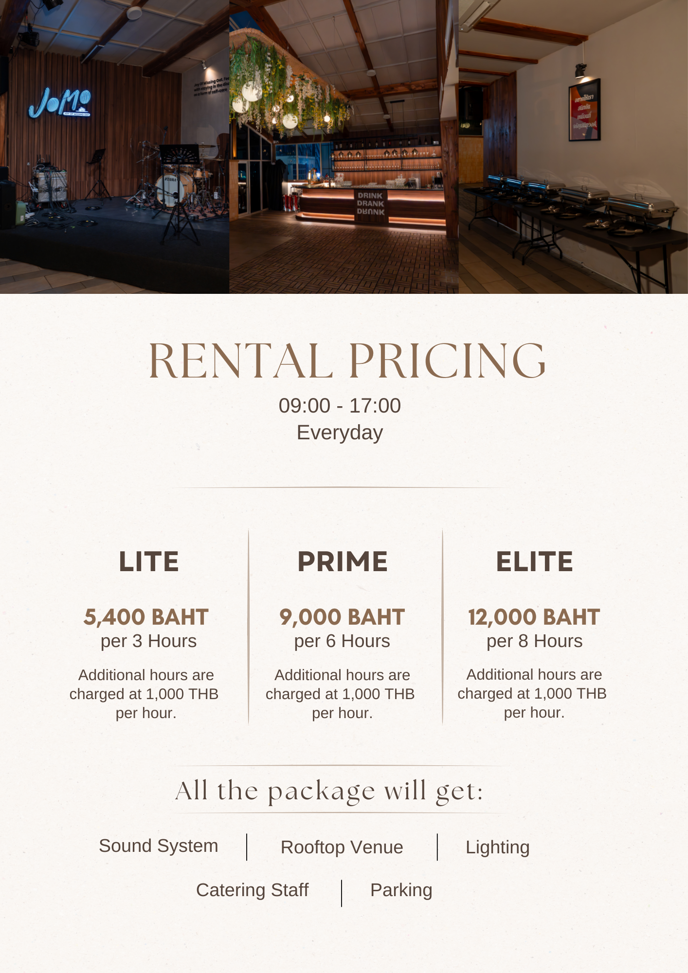 เปิดให้เช่าสถานที่สำหรับงานเลี้ยงและอีเวนต์พิเศษ บนรูฟท็อปสุดหรูใจกลางเมือง เดินทางสะดวก ใกล้รถไฟฟ้า วิวสวย เครื่องเสียงครบ จัดงานไหนก็ปัง!
